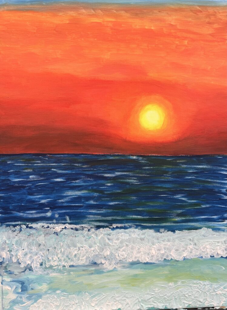 Schülerergebnisse des Kunst-Wahlpflichtkurses von Frau Kampschroer im 9. Jahrgang zum Thema Impressionismus.