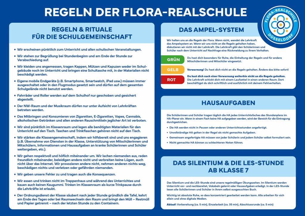 Die von der Schulkonferenz beschlossenen Regeln und Rituale hängen in jedem Klassenraum. Sie sind wichtig, um einen strukturierten und respektvollen Umgang im Schulalltag zu gewährleisten. Dies gewährleisten wir unter anderem durch das sogenannte Ampelsystem.